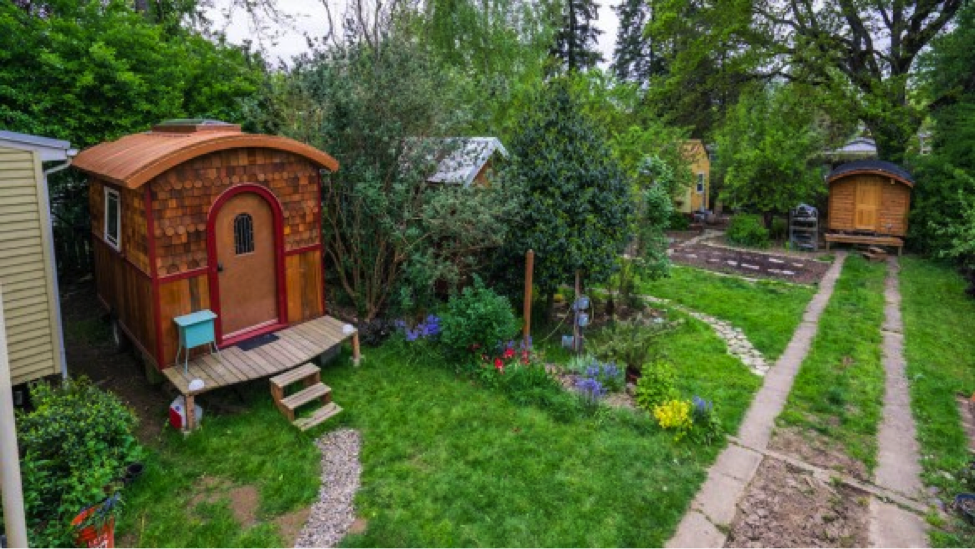 As mentioned earlier, there’s a wide range of communal opportunities, from Cassandra Ferrera’s homestead of two or three families to a larger community such as Tiny Houses Village and Tiny Houses for a Big Change. Another model that’s already attracting a following features approximately 15 houses with a common house and communal garden. In addition, pooled resources and shared tasks keep costs lower (with a barter system for anyone unable to work). The houses may vary in size, from tiny houses to larger houses that include, for example, artists’ studios. Portland’s Tiny House Community, profiled in the video below, is pioneering such a vision.